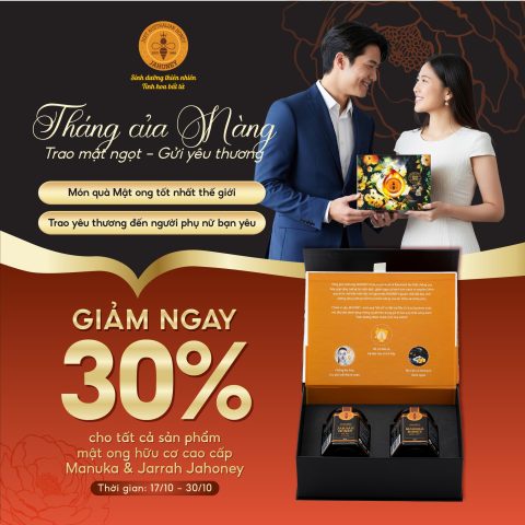 Tháng 10 – tháng tôn vinh phái đẹp, hãy để Jahoney cùng bạn gửi gắm yêu thương qua món quà sức khỏe đẳng cấp từ mật ong Manuka & Jarrah – hai loại mật ong quý hiếm nhất thế giới, nhập khẩu chính ngạch từ Úc. Một món quà tinh tế, sang trọng, vừa ngọt ngào vừa trọn vẹn ý nghĩa – thay bạn nói lời “cảm ơn” và “yêu thương” đến những người phụ nữ trân quý nhất.